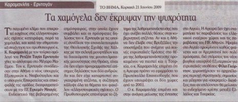 Το Βήμα(21/06/2009): Τα χαμόγελα δεν έκρυψαν την ψυχρότητα
