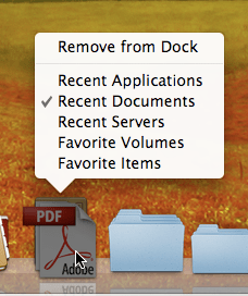 Επαναλαμβάνοντας τη διαδικασία μπορούμε να προσθέσουμε όσα τέτοια stacks θέλουμε και στη συνέχεια να τα μεταλλάξουμε με ctrl-κλικ ώστε να δείχνουν στα πρόσφατα έγγραφα, servers κ.λ.π.